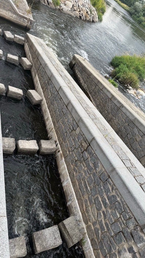After the first several miles of city chaos, walking on tarmac we diverted onto the river path. The path was mostly flat as we hugged the bank of the Vlatava River.
