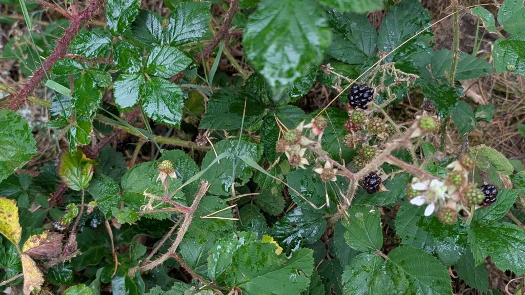 The route along roads met with pathways of corn fields on one side and wheat on the other. Of course there were several raspberry and blackberry bushes, and cherry trees with an abundance of fruit from which we gleaned!