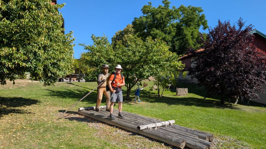 As we were finishing up our last few bites at the pastry shop, a distinguished gentleman asked us about our walk…all in German. He was kind enough to speak slowly throughout the entire conversation. Leopold shared his contact information with us because he wants to send us a postcard. But a special one that he will draw as he is an artist. I love seeing how God works in all things. Mark ended up sharing an arrow pin with Leopold.