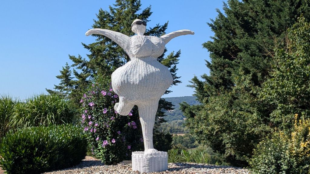We were in a town with a church at the top of a hill (of course). We entered the church and two women were working at a desk there. One woman only spoke German, the other only a little bit of English. The second woman was very excited about seeing us but wanted and English interpreter there period she left the room and brought back a young woman who is working with her father as an archaeologist site. This young woman told us about the church and the archaeological dig near the church. The horse was a symbol they found while at the excavation site. The woman was so kind and even met us part of the way when Mark left his bag containing his passport and we had to back track.
