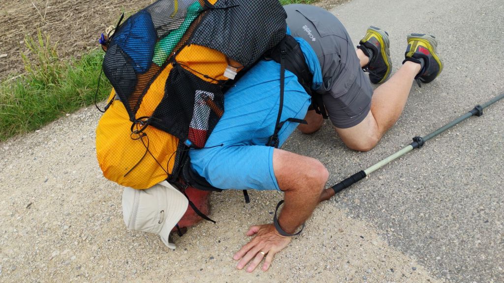 After a glorious 900ft of grass we were back on the asphalt until km 19 where the path turned to gravel for 3km. The day ended with another stint on asphalt, but our lodging village was in site at that point so it was ok.
