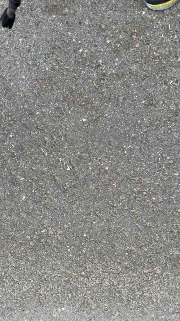 After we left the grocery we walked on the asphalt paved pathway which was occasionally interrupted by crossing an asphalt paved street. In each town we exchanged the asphalt for asphalt of a different shade of grey before returning to small stretches of more asphalt. Finally after 6km of straight asphalt we emerged from an asphalt paved village to yet another 9.5km of asphalt. It was a glorious morning.