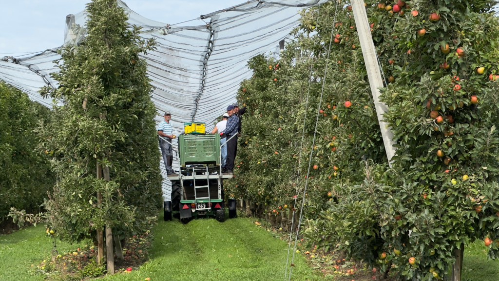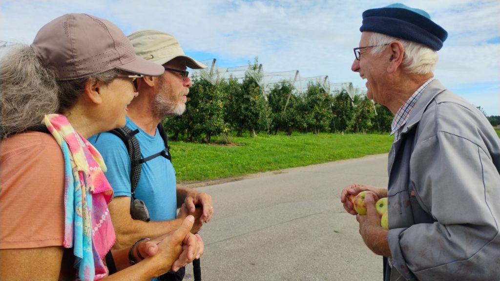 Soon we started seeing fruit trees. Now normally this would be nothing new but the quantity and abundance of fruit soon made it clear that we were in Obst (fruit) country. In fact we walked through the center of a huge orchard. We saw a group of older men in a truck harvesting the apples by hand.
