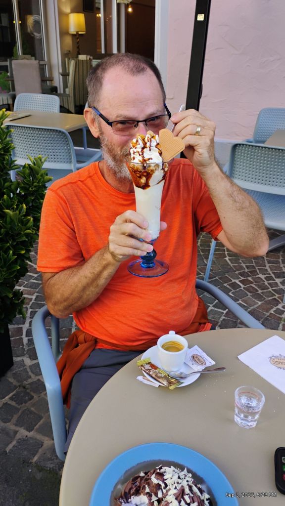 Next we sat down in the shade for dinner and then back down to the town for a treat.