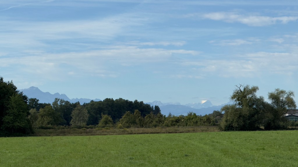 The rolling hills parted occasionally to reveal ever closer view of the Swiss Alps.