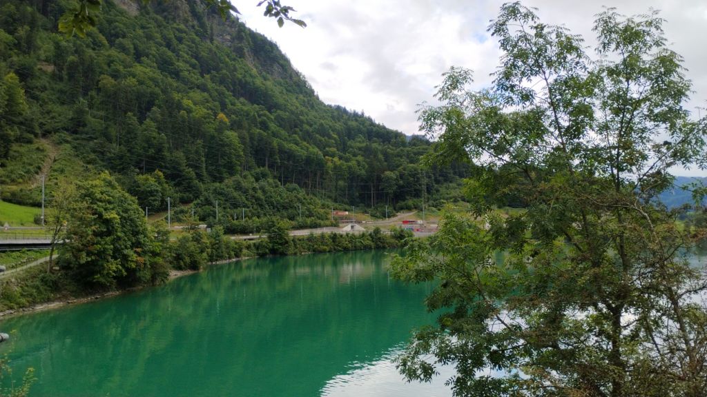 Soon we were on the shores of Lake Lungern. The water of the lake mesmerized me with its shades of turquoise and teal. Honestly it looked like it was poorly photoshopped.  The colors seemed so unnatural.