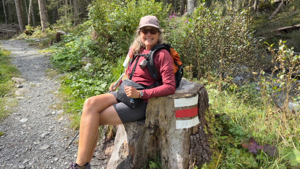 Most of the morning we walked alone, but at one point we came out of the woods, crossed a road, and came to the Hotel Rosenlaui. There is also a bus stop at that location and a full load of other hikers had recently disembarked. From that point on, as the trail flattened for a time, we had others in sight for a good bit of the rest of the day. One of those hikers was Markum from Wisconsin. It was fun to chat with another American for a while.