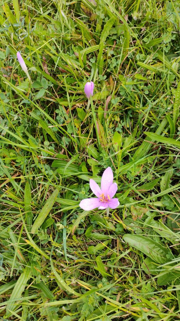 One of the things we have noticed is the start of changing leaf color and the temperatures are a little cooler in the morning. Contrasting are the patches of blueberries which are a surprise as well as some pretty pink alpine flowers.