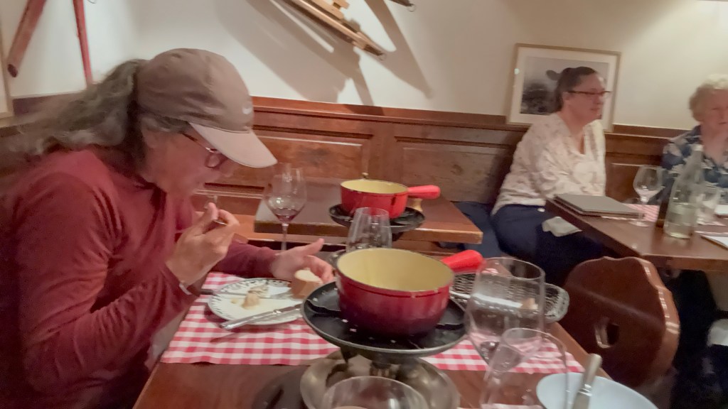After visiting the cathedral, we were going to visit a museum, but instead got hungry and decided to splurge for one meal in the city (our lodging has a kitchen so the other meals will be store bought). We had a fondue with a Raclette starter. It was delicious but honestly the fondue we made ourselves in Grindelwald was better. It was also too much, so we left very full and VERY thirsty from all the salt in the cheese.